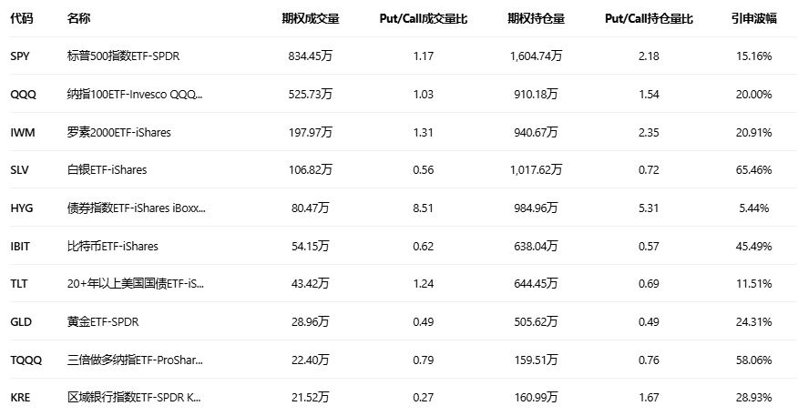 美股ETF期权成交量排行榜前十