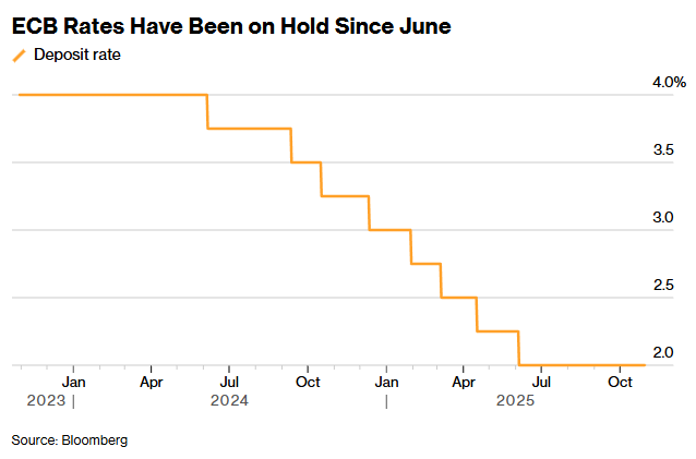 通胀前景温和加之经济复苏势头增强,促使大多数分析师预测欧洲央行基准利率将在2026年之前保持不变。与此同时,面对贸易和全球冲突等长期挑战,欧洲央行官员们虽然看似满意,但强调如果前景突然发生变化,他们随时准备采取行动。