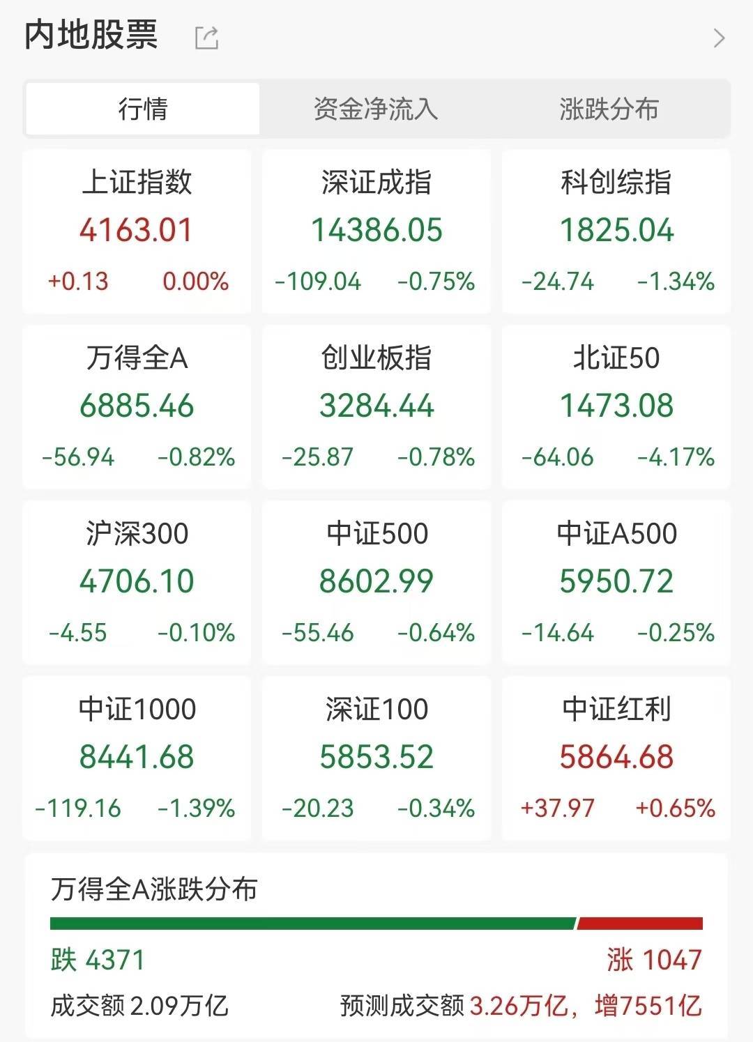 【大河财立方消息】3月2日,A股市场震荡调整,截至午间收盘,沪指率先翻红,深证成指跌0.75%,科创综指跌1.34%,创业板指跌0.78%,全市场半日成交额2.09万亿元,较上一个交易日同时段放量4936亿元。