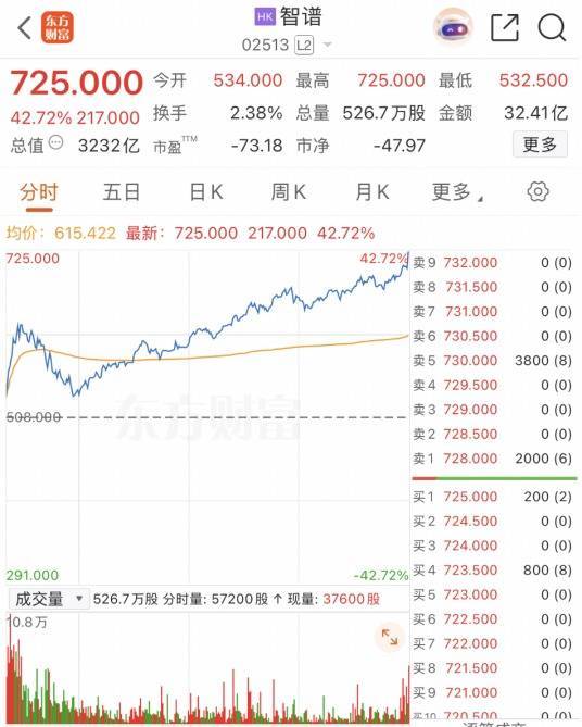 2月20日,港股市场AI股集体飙升,截至收盘,智谱暴涨42.72%,总市值突破3200亿港元;MiniMax大涨14.52%,总市值亦突破3000亿港元;海致科技集团收涨超28%,创上市新高。